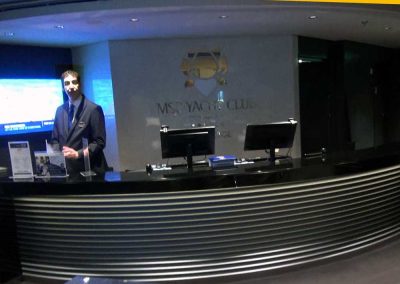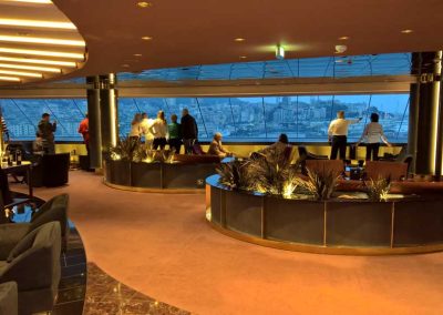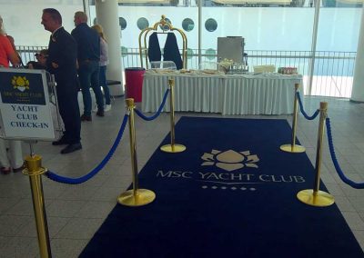 Sie treffen die Butler bereits am Terminal – bevor Sie überhaupt auf das Schiff gehen. Ein Butler kümmern sich dort um Ihr Gepäck, ein anderer begleiten Sie indessen zu dem separaten Check-in Bereich für die Gäste des Yacht Clubs.