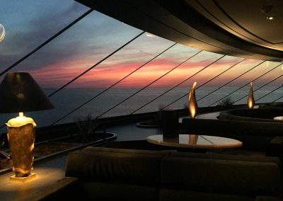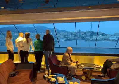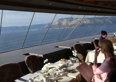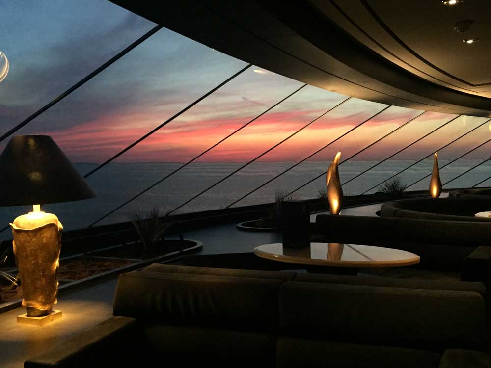 Hier erwarten Sie exquisite A-la-carte Gourmetmenüs zum Mittag- und Abendessen, die selbst anspruchsvolle Gäste begeistern. Natürlich ohne feste Sitzordnung oder feste Sitzungszeiten. Selbstverständlich können Sie hier auch frühstücken. - Top Sail Lounge mit Panoramablick