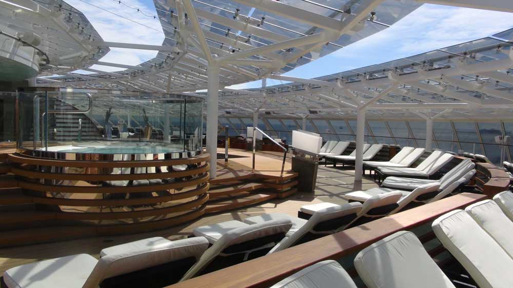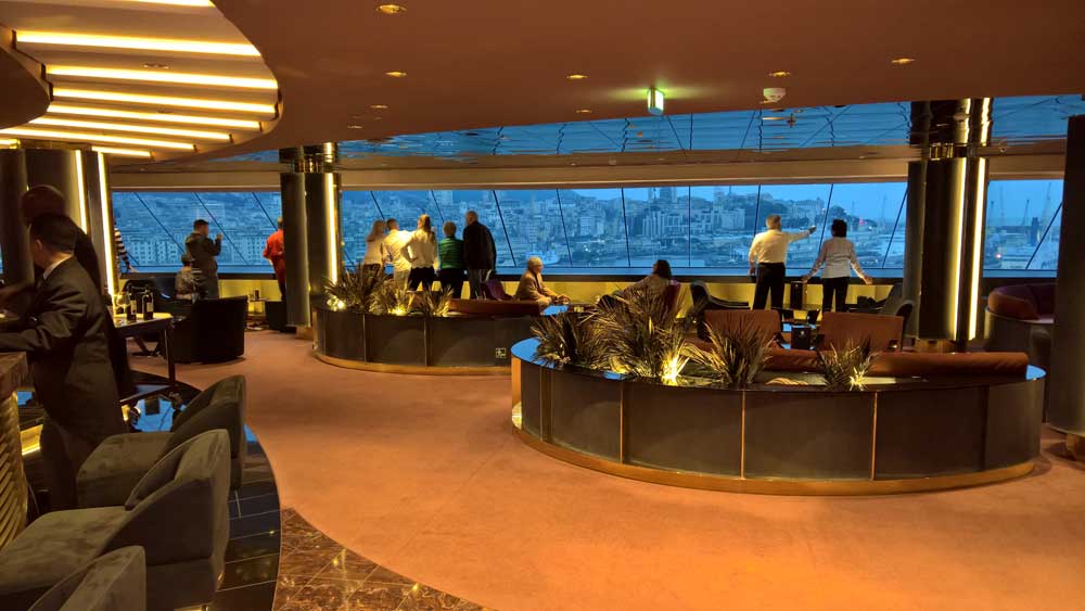 Der Yacht Club befindet sich vorne auf den oberen Decks des Schiffes