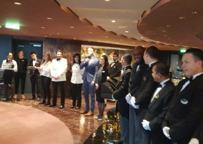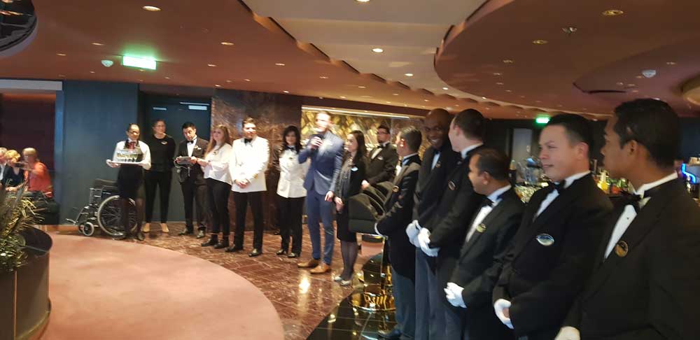 Während der Reise versuchen die Butler wirklich Ihnen jeden Wunsch von den Augen abzulesen. Ob in der Lounge, in der immer Snacks bereit stehen, oder im Restaurant zum Frühstück, Mittag- oder Abendessen. Auf Wunsch werden Sie werden zu Veranstaltungen im Theater begleitet, wo Sie alle Wartenden umgehen und zu den reservierten Plätzen gebracht werden. Natürlich kümmern sich die Butler auch um die Schuhe und die Wäsche – genauso wie auf Wunsch ums aus- und einpacken der Koffer.